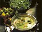 Капусту разобрать на отдельные листья, опустить в кипящую воду на несколько минут, откинуть на дуршлаг и дать стечь воде. Морковь натереть на крупной терке, перемешать с рубленной зеленью и мелко изрубленным чесноком. Начинку завернуть в капустные листья, положить в кастрюлю и залить кипящим рассолом из расчета - 1 столовая ложка соли на 1 литр воды. Через 2 дня блюдо готово.