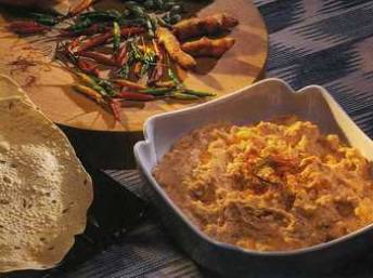 Острый кокосовый соус с крабами и кукурузные лепешки